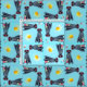 It’s a dog’s life! Be cool and celebrate the dog days of summer with this pattern of cute Great Danes wearing sunglasses and relaxing with drinks among suns and more drinks.