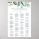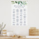 This summer greenery alphabetical seating chart poster is perfect for an elegant midsummer wedding. This sign can be used to organize your guests alphabetically or by table number. The botanical design features a lush arrangement of painted watercolor eucalyptus, greenery, and green leaves with subtle sprigs of blush pink blossoms. This wedding poster includes enough room for up to about 120 guests. Make room for more (or less) guests by clicking the "customize" button and decrease or increase the size of the font. In addition to the placement of each guest, personalize this sign with the names of the bride and groom and the wedding date.