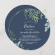Summer Greenery Navy Round Baptism Invitation