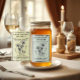 2 x 3" honey label with realistic bee and aster. Dashed border in a gray adds an old-fashioned touch.