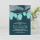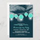 Fun summertime design with glowing, aqua blue patio lanterns, twinkling stars and tropical trees in the background, for these classy and elegant housewarming party invitations. You can easily change the "summer evening cocktail" line to "summer celebration", "barbecue & bonfire" or any other style of party.