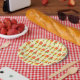 Cute digital repeat pattern of ice lollies in bright summery colors on colorful paper party plates.