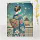 This beautifully designed greeting card features a graceful woman dressed in a summer kimono adorned with delicate floral patterns, evoking the warmth and charm of the season. She gently holds a small insect cage, gazing at the glowing fireflies that illuminate the tranquil night sky. This card is perfect for Japanese-themed parties, seasonal greetings, or anyone who appreciates the serene beauty of traditional Japanese aesthetics. With its calming Zen feel, it makes a thoughtful and elegant gift for any occasion.