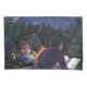 Starry Night art by Traci Van Wagoner print, posters, accessories, and gifts features our original painting of two kids and their big, black dog camping out under the stars reading a fantastical book around a camp fire about knights and dragons. The magic of the story is swirling up into the starry sky to show a knight and a dragon in an eternal nighttime dance of stars. Enjoy a summer night camp out in the mountains.
