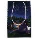 Starry Night art by Traci Van Wagoner print, posters, accessories, and gifts features our original painting of two kids and their big, black dog camping out under the stars reading a fantastical book around a camp fire about knights and dragons. The magic of the story is swirling up into the starry sky to show a knight and a dragon in an eternal nighttime dance of stars. Enjoy a summer night camp out in the mountains.