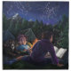 Starry Night art by Traci Van Wagoner print, posters, accessories, and gifts features our original painting of two kids and their big, black dog camping out under the stars reading a fantastical book around a camp fire about knights and dragons. The magic of the story is swirling up into the starry sky to show a knight and a dragon in an eternal nighttime dance of stars. Enjoy a summer night camp out in the mountains.