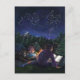 Starry Night art by Traci Van Wagoner print, posters, accessories, and gifts features our original painting of two kids and their big, black dog camping out under the stars reading a fantastical book around a camp fire about knights and dragons. The magic of the story is swirling up into the starry sky to show a knight and a dragon in an eternal nighttime dance of stars. Enjoy a summer night camp out in the mountains.