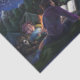 Starry Night art by Traci Van Wagoner print, posters, accessories, and gifts features our original painting of two kids and their big, black dog camping out under the stars reading a fantastical book around a camp fire about knights and dragons. The magic of the story is swirling up into the starry sky to show a knight and a dragon in an eternal nighttime dance of stars. Enjoy a summer night camp out in the mountains.