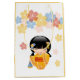Summer Kokeshi Doll - Yellow Kimono Geisha Girl Medium Gift Bag