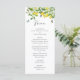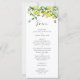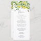 This is a watercolor lemon botanical themed bridal shower menu. The design shows a branch of a summery lemon tree, its white flowers, green leaves and fluttering butterflies.