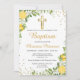 Summer Lemon Greenery Gold Cross Baptism Invitation