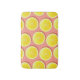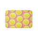 A pattern of fresh & juicy lemon slices in bright, vivid shades of yellow, with a watercolour texture to give it that freshly cut look. They are placed on a salmon pink background for a bright & summery look, like pink lemonade.