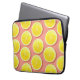 A pattern of fresh & juicy lemon slices in bright, vivid shades of yellow, with a watercolour texture to give it that freshly cut look. They are placed on a salmon pink background for a bright & summery look, like pink lemonade.