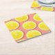 A pattern of fresh & juicy lemon slices in bright, vivid shades of yellow, with a watercolour texture to give it that freshly cut look. They are placed on a salmon pink background for a bright & summery look, like pink lemonade.