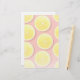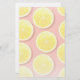 A pattern of fresh & juicy lemon slices in bright, vivid shades of yellow, with a watercolour texture to give it that freshly cut look. They are placed on a salmon pink background for a bright & summery look, like pink lemonade.