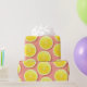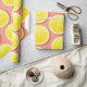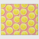 A pattern of fresh & juicy lemon slices in bright, vivid shades of yellow, with a watercolour texture to give it that freshly cut look. They are placed on a salmon pink background for a bright & summery look, like pink lemonade.