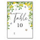 Summer Lemon Wedding Table Number