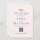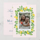 This wedding invitation collection suite is beautifully designed with watercolor illustrations of fresh lemons and leaves. The mixed colors of the watercolor create a calming and elegant backdrop for the design suite. The fonts used for the text are sleek and refined, adding a touch of sophistication to the design.