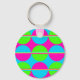 Summer Lime Green Hot Pink Teal Circles Stripes Keychain