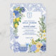 Summer Mediterranean Blue tiles Lemon Wedding Invitation