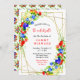 This fun and whimsical birthday party invitation features watercolor blueberries, strawberries, redberries and foliage on a gold geometric frame. The text combines handwritten script and serif fonts for a stylish and modern look. This is perfect for a summer rustic birthday party.