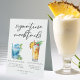 This chic signature mocktails table tent sign features simple black typography above 2 cute drinks and their ingredients for your summer wedding bar. A Blue Hawaiian Sunrise drink and non-alcoholic virgin Piña Colada add a cool flair to your bar menu. Complete with the couple's names and date for their reception.