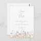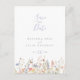 This summer multicolor wildflower save the date postcard is perfect for a rustic wedding. The design features watercolor pink, blush, purple, red, burgundy, yellow, white flowers and butterflies with greenery neatly bunched in elegant floral bouquets.