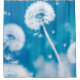 Summer natural floral background. White dandelions and seeds on a blue background. Soft focus. Banner format.