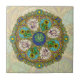 Art Nouveau arches surround the stained glass layers of this mandala, featuring fireworks, sunflowers, shells, suns, and storms in bright colors to embody the activeness that comes with summer. This tile can be framed to create a trivet or placed inside a wooden gift box lid. Tiles without a frame will also fit inside the large gift box to create a matching set.