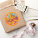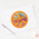 Round sticker to match our “Summer of Love Peace Sign” invitation with an image of an orange peace sign and the sentiment “Summer of Love” in fun, 60s-style lettering on summery rainbow tie dye. The Summer of Love was a social phenomenon that occurred during the summer of 1967, when as many as 100,000 people, mostly young people sporting hippie fashions of dress and behavior, converged in San Francisco's neighborhood of Haight-Ashbury. See matching custom-cut vinyl sticker, invitation, envelopes, favor bag, favor tag and wrapping paper. See the entire Psychedelic 60s Sticker collection in the INVITES | Stickers & Labels section.