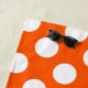 Large white polka dots on a background of bright Summer Orange. Personalize the matching orange and white stripe on the bottom with your choice of name or special text. Fun accessories are available.