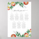 Summer Orchard Seating Plan with 7 Table settings. A fun, bright, but sophisticated design, that will work so well with a summer garden or orchard theme. Gentle watercolour artwork with blush oranges and yellows, and dusky greens, with delicate white flowers.