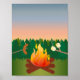 This design features marshmallows on a stick toasting over a fire. The background is a forest with a sky at dusk. The back of this card features a forest of trees. These posters would be great for a summer or outdoor camp. Click on Customize It to add your text. The Packenham wood font works especially great for this design.