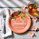 Enhance your table setting with these Sweet Peach Orchard baby shower paper plates. The design features lush watercolor peaches and pink blossoms set against a warm coral background. These plates are perfect for guests attending a fruit-themed tableware decor.