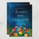 Summer party tropical dark blue night sky parrots invitation
