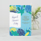 A summer party invitation with tropical leaves against a light blue background. Perfect for any summer celebration. <br/><br/>The card is easy to customize with your wording, font, font color, paper shape options and choice of six paper types.<br/><br/>Not exactly what you're looking for? All our products can be custom designed to meet your needs at no extra charge.<br/><br/>Simply contact us at askcottonlamb@gmail.com.<br/><br/>Coordinating products available: Just ask us!"