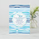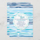 A delightful horizontal-line pattern of blues with white with a round center decal that holds your party details. Perfect for a boy baby shower. (<a href="http://www.freepik.com/free-vector/watercolor-abstract-summer-pattern-background_1196817.htm">Designed by Freepik</a>). <br/><br/>The card is easy to customize with your wording, font, font color, paper shape options and choice of six paper types.<br/><br/>Not exactly what you're looking for? All our products can be custom designed to meet your needs at no extra charge.<br/><br/>Simply contact us at askcottonlamb@gmail.com.<br/><br/>Coordinating products available: Just ask us!