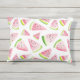 Summer pattern fruits watermelon pink and white outdoor pillow.