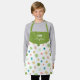 Great color and even though I ordered the kid size, it covers well enough to use during the holidays. I am not a big woman and prefer a shorter apron. I stand 5"6" and the length of the garment goes to mid-thigh. The tie straps fit well at my waist and even though there is no neck strap adjustment, the opening is plenty big enough. I am happy with the size and fit. I am sharing my apron with my 10 year old grandson, too! The color is vibrant and looks good, as shown on the website. The stitching looks strong and reinforced. Photographed is front side and back side of the apron, reinforced straps and coloring. My phone camera may not be the best at showing the details.