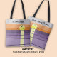 Designed as a prize or promotional item, this all-over-print tote captures the joy of summer with a stylized beach sunset and a sky fading. The top fifth carries the contest tagline placeholder “A Smile Travels” in Bandakala font, on a gray background, and the back offers space for your hashtag or company info.