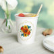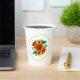 Summer party paper cups with a sunflower floral theme and gold geometric frame