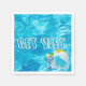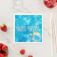 "get wet" text in wavy font effect for swimming pool party with cocktail and splashing beach ball in turquoise pool water.