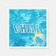 "chill" text in wavy font effect for swimming pool party with splashing beach ball in turquoise pool water.
