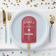 Designed to match our popsicle kids' birthday party invitations, these cute personalized paper plates feature a bright red popsicle on the front, with the words "Happy Birthday [Name]" in white retro lettering adorned with a heart.