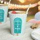 Designed to match our popsicle kids' birthday party invitations, these cute personalized paper cups feature a bright teal popsicle with the words "Happy Birthday [Name]" in white retro lettering adorned with a heart.