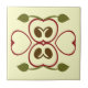 Think of warm summer with green leaves accenting a red apple slice center of this yellow tile.