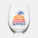 Summer retro sunset palm tree stemless wine glass