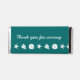 Give your guests a tasty treat to take home at your summer-themed wedding or special event with these Hershey’s bars, featuring a pattern of white starfish, sand dollars, and conch shells below sample text on a rich teal background on the top of the wrapper. The bottom features name and date spots with a conch shell and sand dollar flanking the text. Customize the message, initials, and date to create a personalized favor for your guests, wedding party, or anyone else who could use a treat. This candy will match with any other Summer Seashells in Teal product so that you can easily make your event as coordinated as you desire.