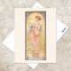 A postcard with the fashion illustration from the Art Nouveau Period, titled Summer (1900), by the Czech artist Alphonse Mucha (1860-1939). A fashionable woman in a pink dress in a meadow of flowers to personify the summer season. The Seasons or Four Seasons Series is the name of three different color lithograph series produced by the artist. They were produced in 1896, 1897, and 1900.