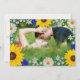 Summer blue sky featuring golden yellow sunflowers, daisies, and assorted wildflowers with botanical greenery. Photo template via Pixabay licensed under CC0 and must be replaced with your own photo